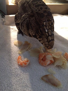 Feeding Kreature is an interesting experience! He prefers meat! Tonight was "Fish Friday" for him and I gave him cod and shrimp. He picked out the shrimp before eating the fish.